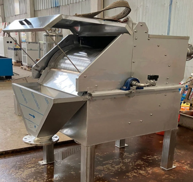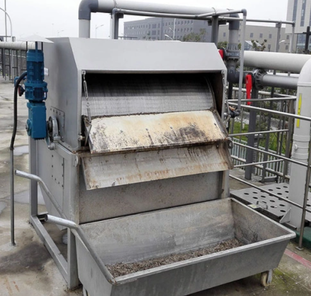 When The Rotary Drum Screen Runs, The Sewage Or Other Raw Water Will Flow Into The Screen Inlet Tank Via Inlet Pipe Lifting By Pump. Through Eliminator(Or Water Distribution Pipe) , The Sewage Will Flow Into The Front Of Screw Screen And Pass Through The Screen Surface And Flow Into The Drum. Finally, The Sewage Will Flow Out At The Bottom Of The Drum. The Suspended Solids Will Be Left On The Drum Surface. With The Vibration Of The Drum Surface, The Suspended Solids Will Be Transported From One Side To Another Side And Will Be Discharged By The Discharging Mechanism.